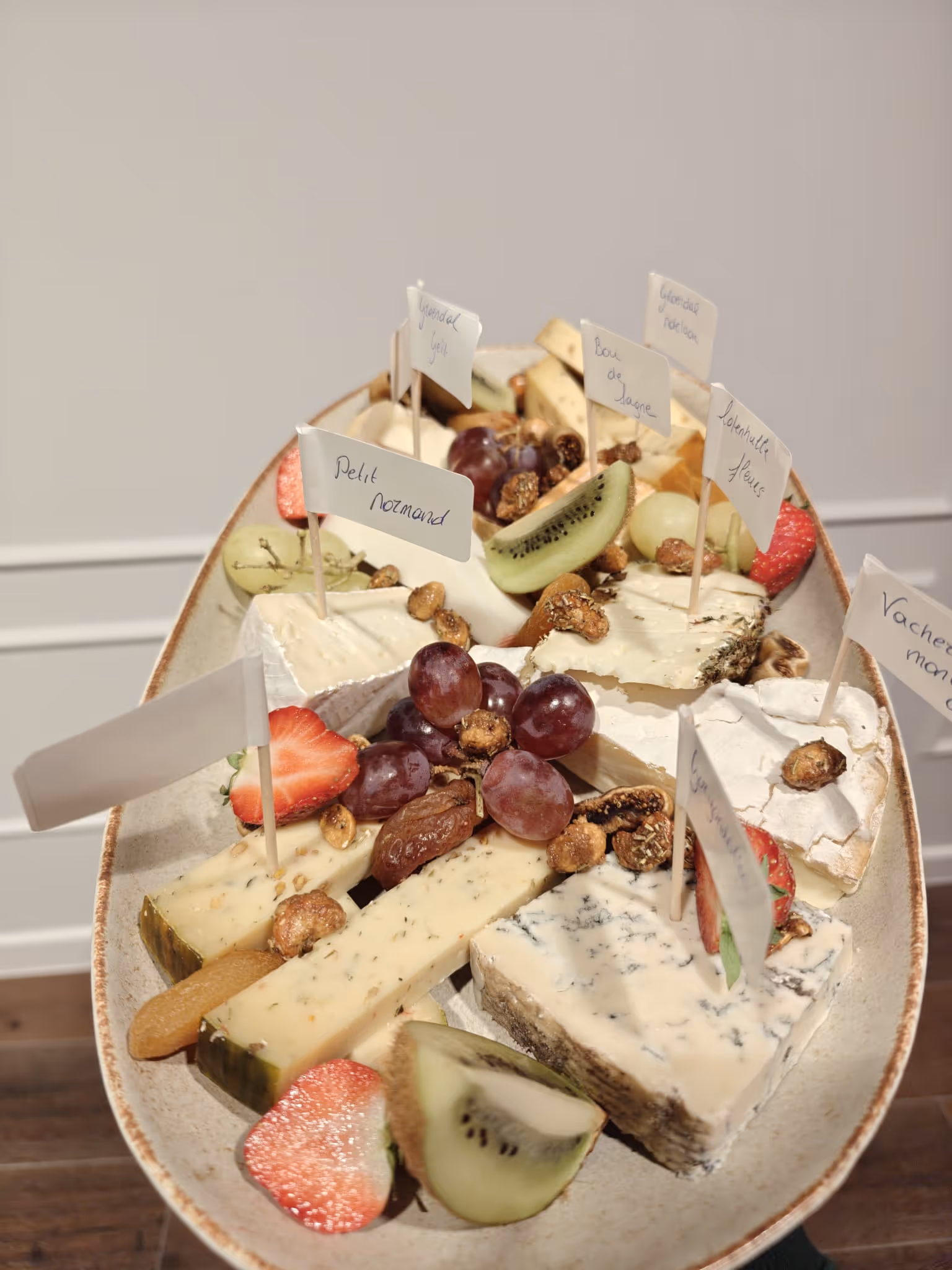 300g selectie van Artisanale Kazen, Verse Confituur, Versierd met Fruit en Notenmengeling - mét brood