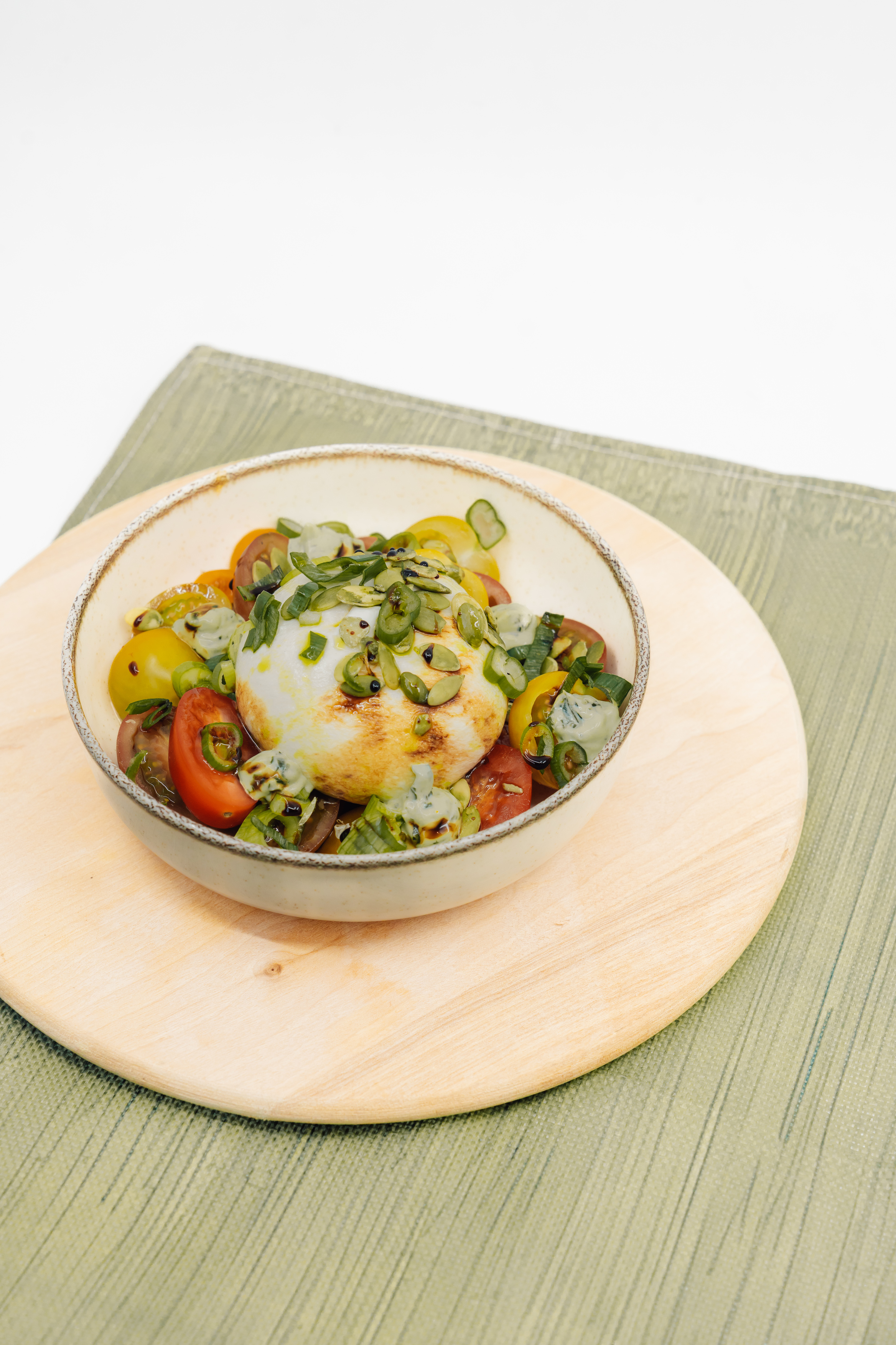 Burrata - kerstomaat - pijnboompitten - groene pesto