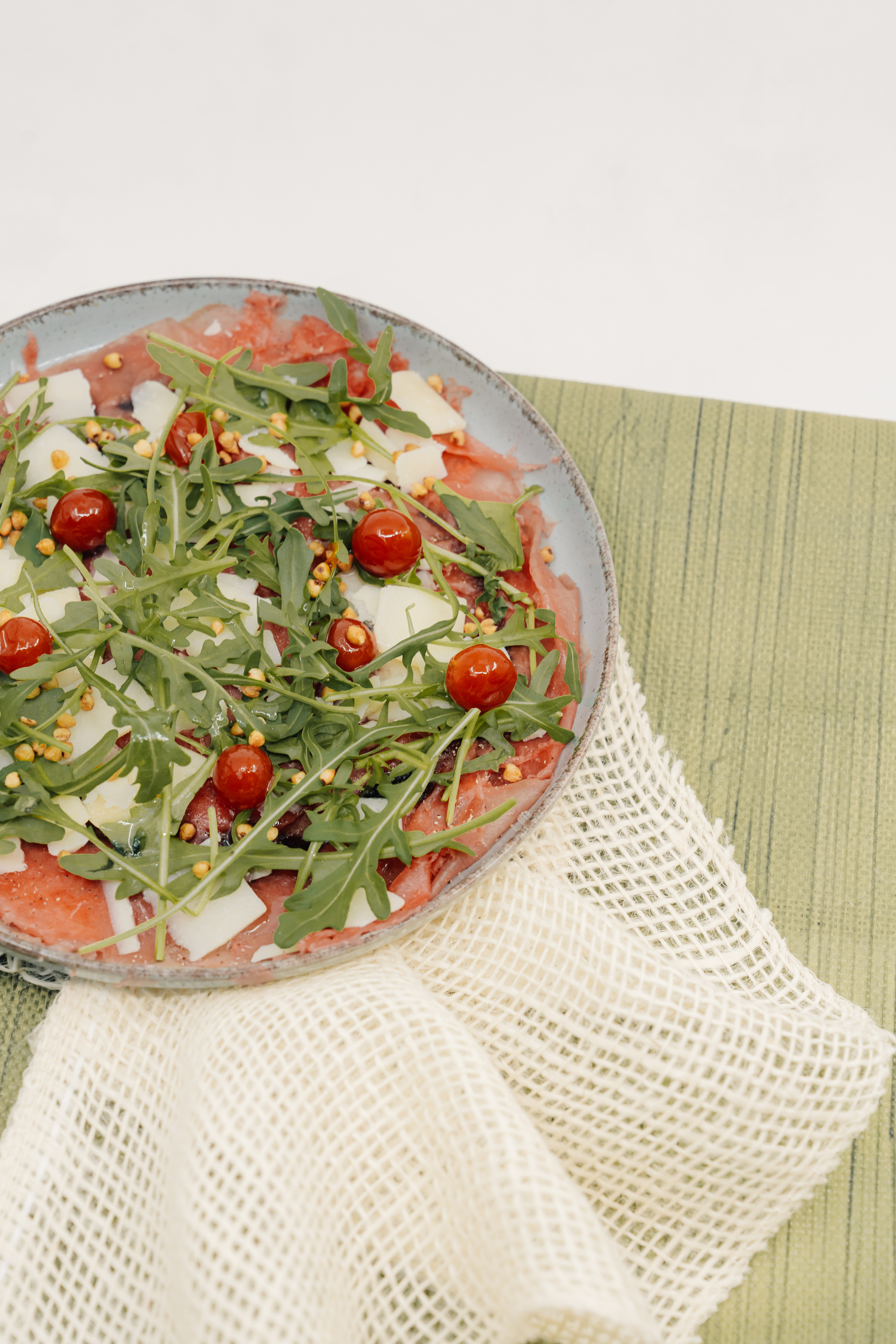 Carpaccio gerookte Holstein - truffelmayo - rucola - parmezaan